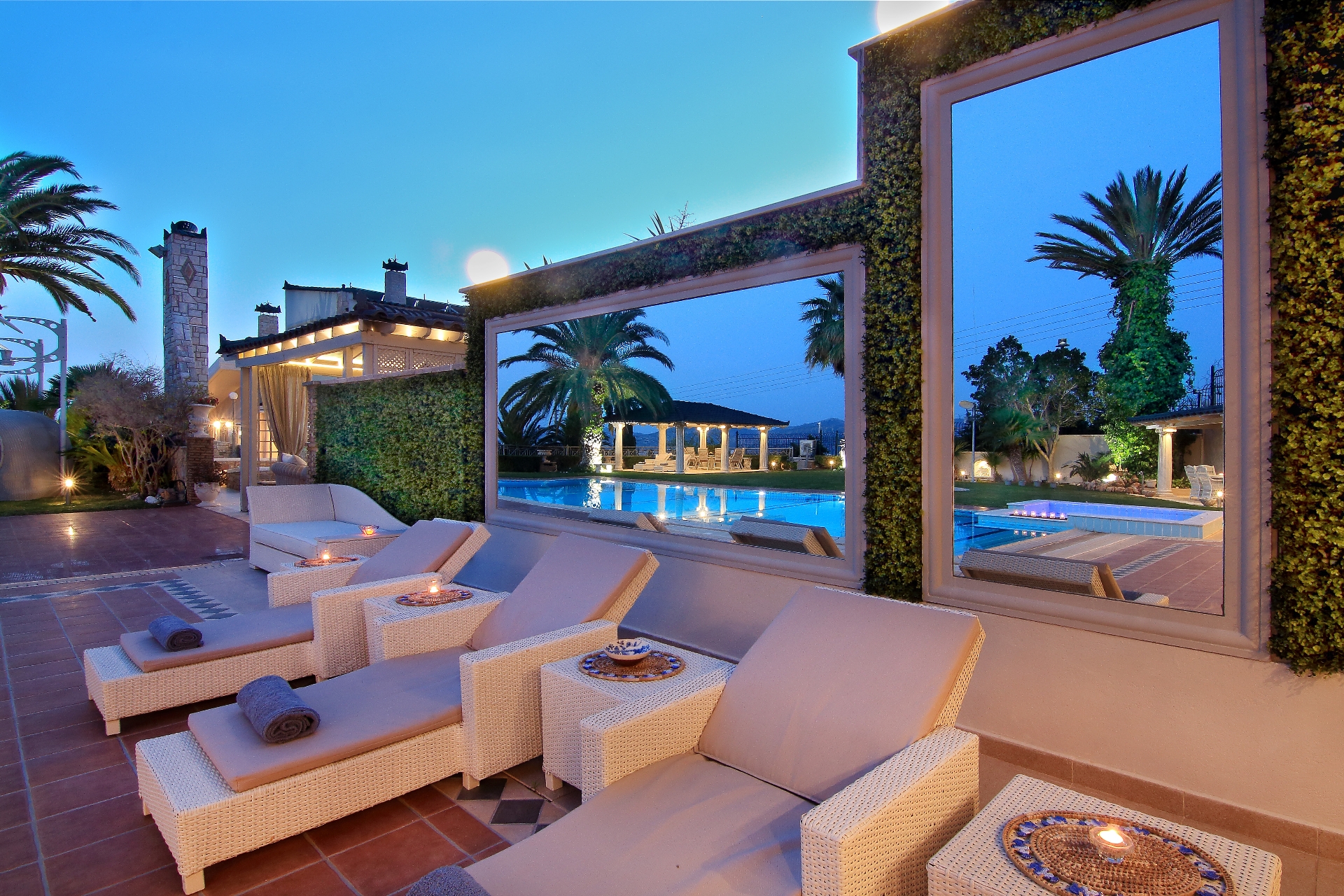 Taking Greece’s general geography into account, as well as the local, the mansion is situated on the side of a mountain, way above sea level, but not far from it. At an approximate distance of 1.5 km from the sea and its aforementioned height, it is gifted with a panorama of the Saronic Gulf and the surrounding areas, the sea visible almost at all times.